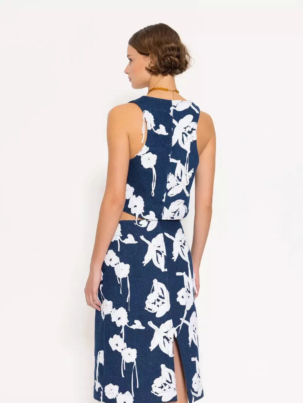Chaleco Paris confeccionado en denim 100% algodón con bordado de flores aplicadas que aportan relieve a la prenda. De silueta recta y largo a la primera cadera, el acceso es frontal mediante broches metálicos.