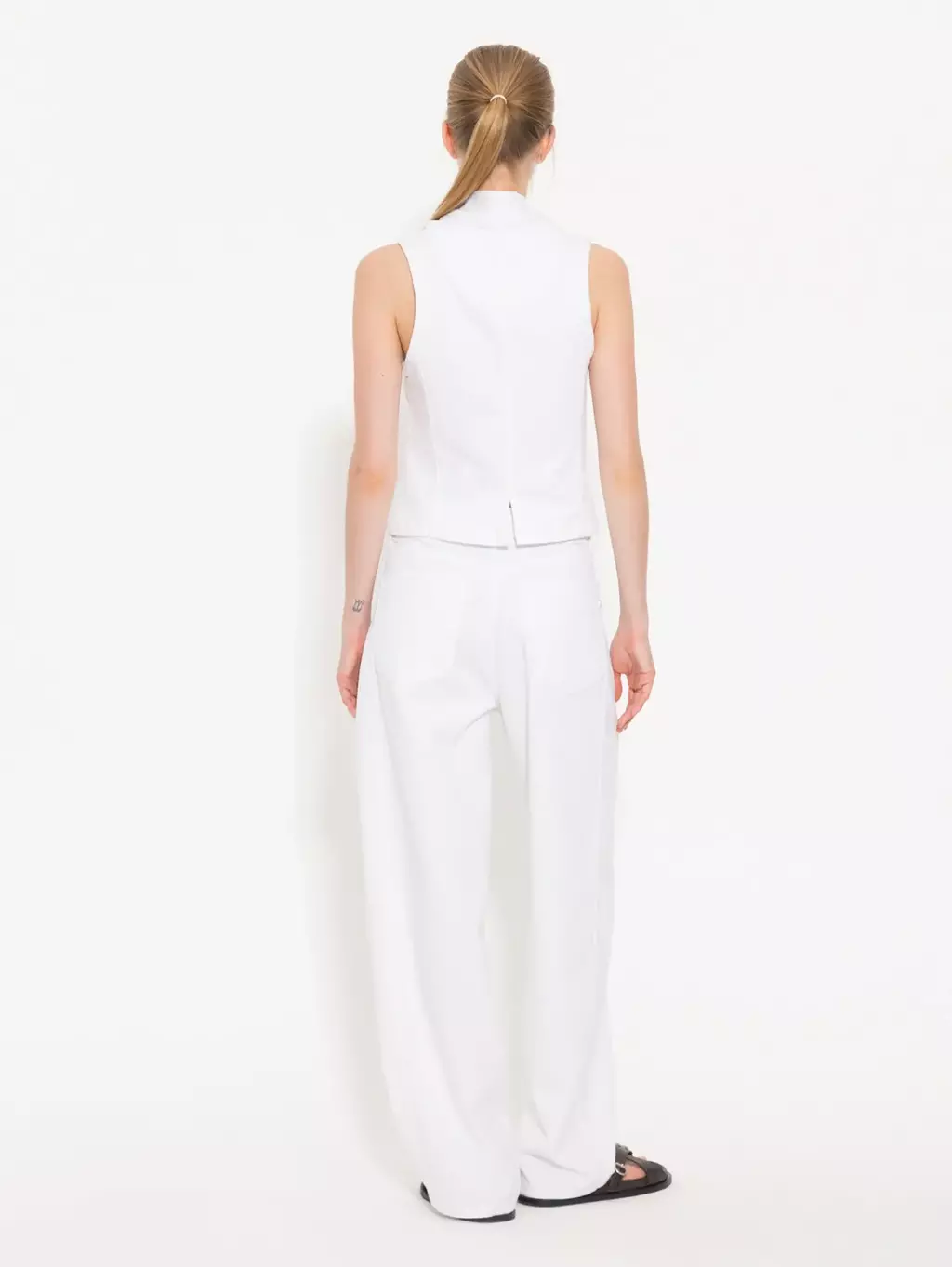 Jeans Slouchy confeccionado en gabardina blanca liviana, sin lycra. Presenta recortes en el diseño. Es de silueta y calce relajado.
