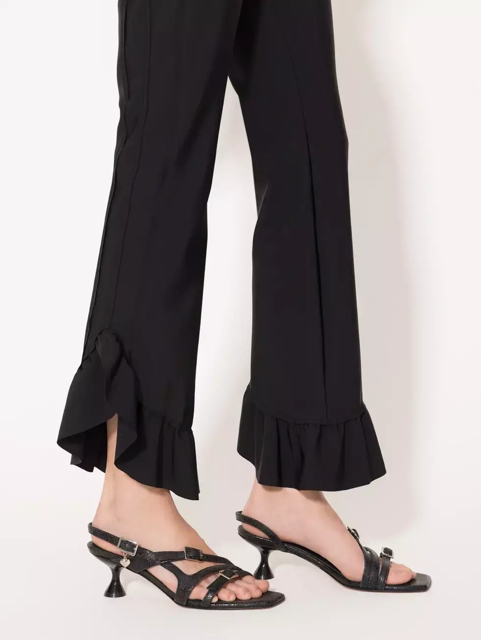Pantalón Ballet confeccionado en lycra doble que garantiza un calce cómodo y contenedor. Presenta cintura rebatida con elástico interno sin fruncir, acceso lateral mediante cierre niquelado con tiracierre marcario. El diseño incluye recortes que optimizan el calce y volados curvos en el ruedo que suman movimiento.