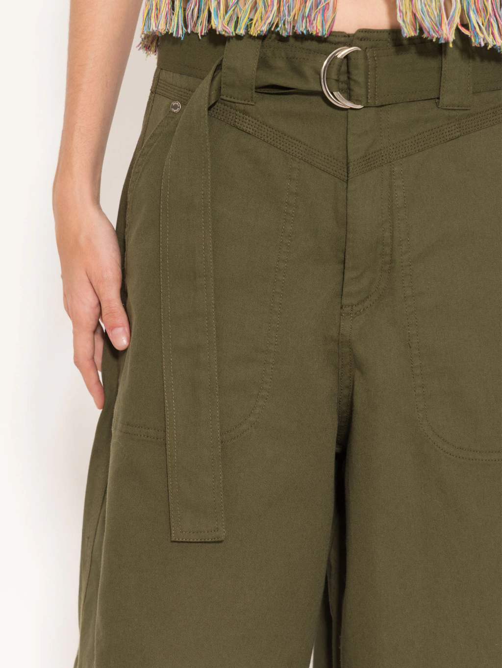 Bermuda confeccionada en gabardina de algodón, con largo a la rodilla y calce relajado. Incluye cinturón de tela base para ajustar en la cintura, aportando un aire utilitario y práctico. Lleva bolsillos delanteros amplios y bolsillos traseros que suman funcionalidad. Su silueta amplia y versátil la convierte en una prenda ideal para looks urbanos y frescos, con un estilo casual y moderno.