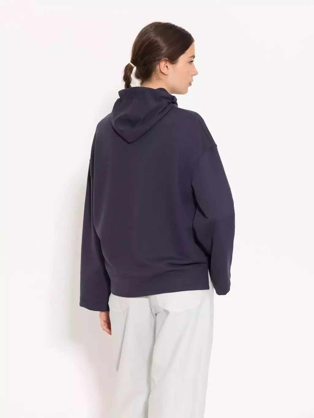 Buzo Amore confeccionado en rústico liso de algodón. Con capucha, mangas largas y amplias que aportan comodidad a la prenda. Lleva estampa delantera en flock.