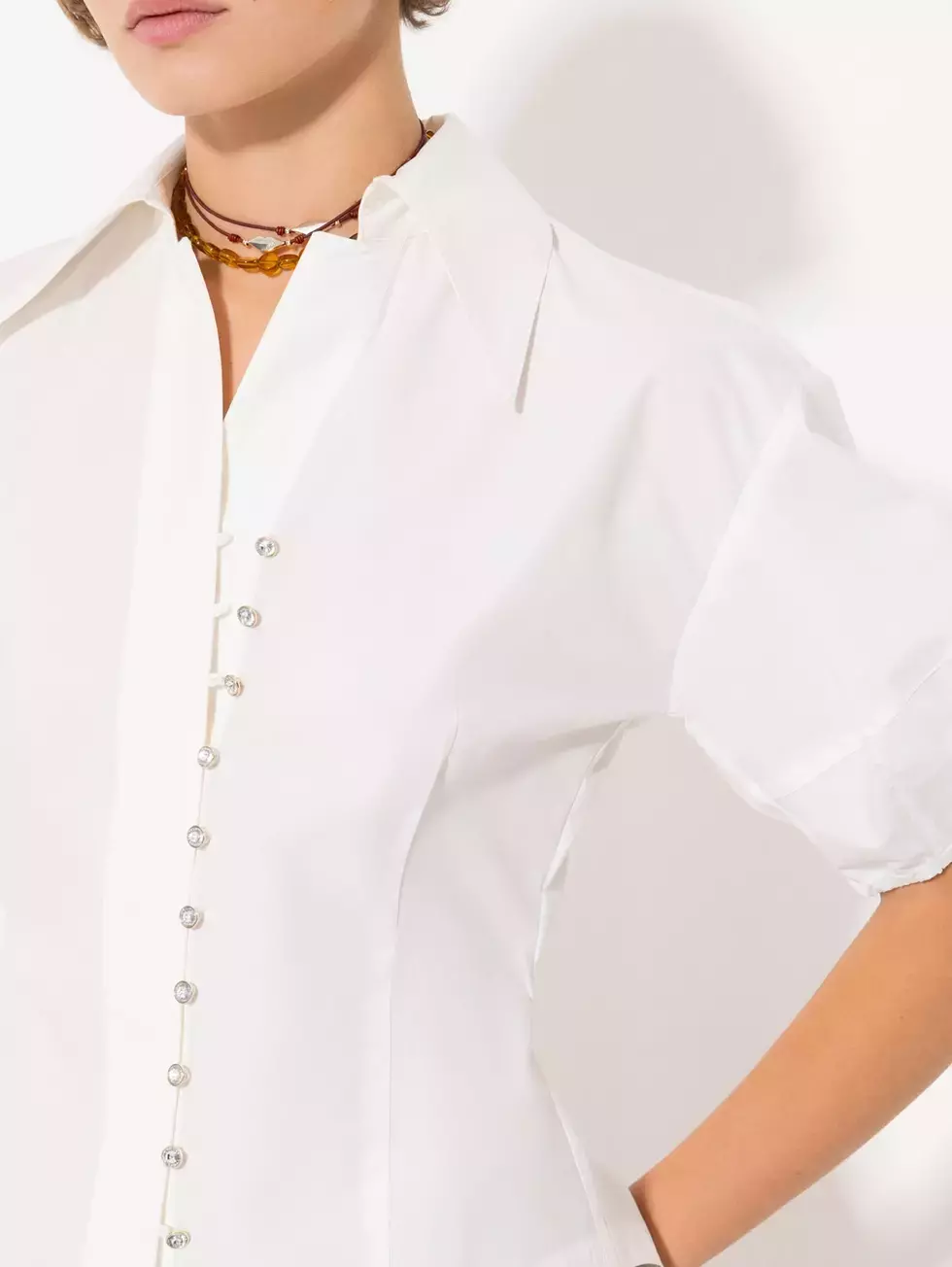 Camisa Ambar confeccionada en poplín, de silueta amplia y diseño liviano. Incluye cuello clásico y cierre frontal con botones. Es un estilo atemporal que combina con todo.