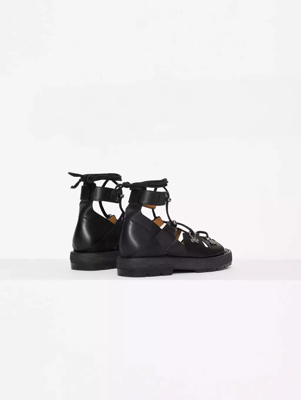 Sandalia Capri acordonada realizada 100% en cuero vacuno con pasadores níquel. El cordón permite un acceso fácil y ajustable. El interior está forrado en cuero vacuno.