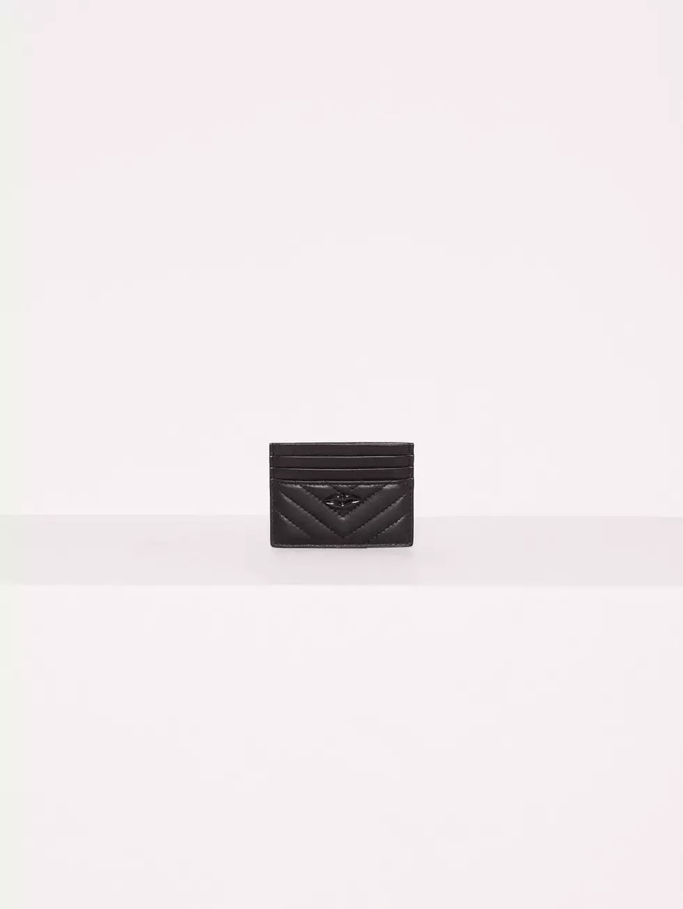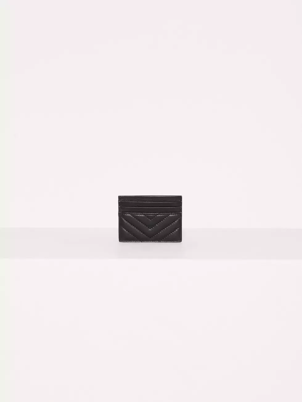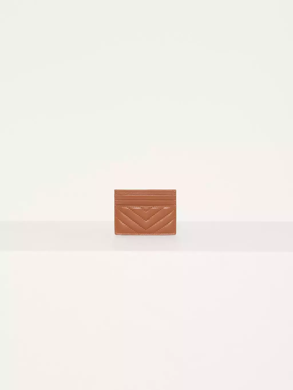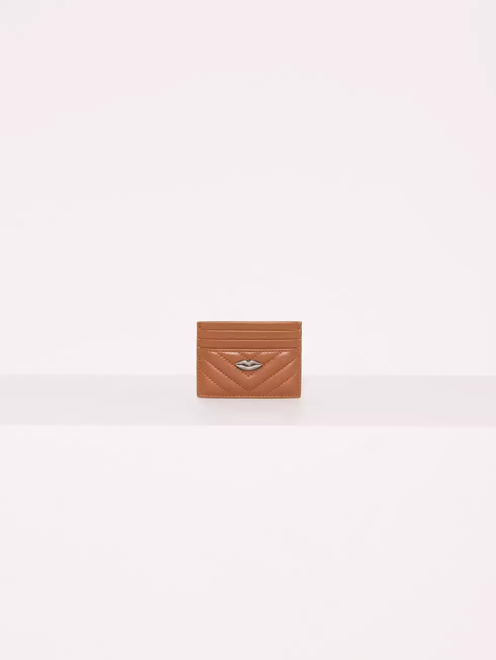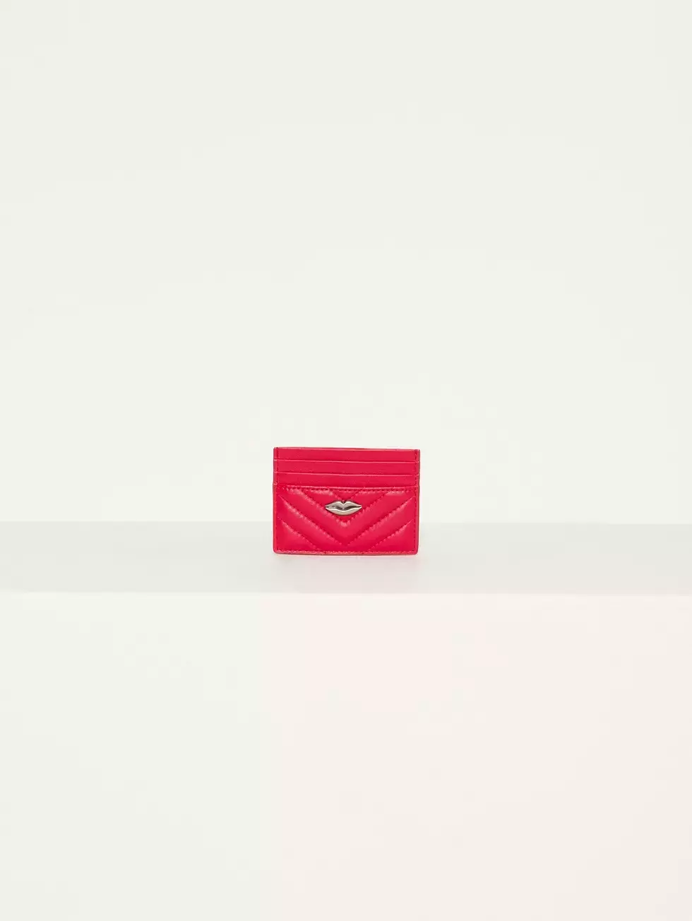 Tarjetero Lipstick confeccionado en cuero vacuno liso con efecto matelaseado. Incluye el icónico aplique Lipstick metálico en el frente, aportando un detalle sofisticado y distintivo. Un accesorio compacto y funcional, ideal para complementar la línea Lipstick.