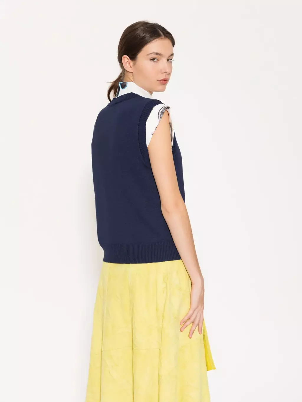 Top Velvet corto hasta la primera cadera, tejido en hilado frío para una sensación fresca y ligera. Sin mangas y de silueta simple, es una prenda versátil y delicada que se adapta fácilmente a diferentes looks de temporada.